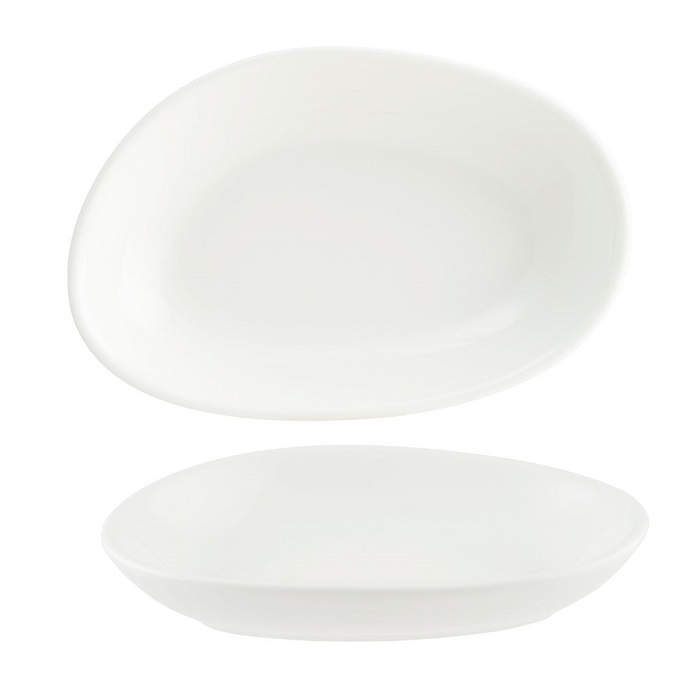 Блюдо белого цвета со сливочным оттенком.